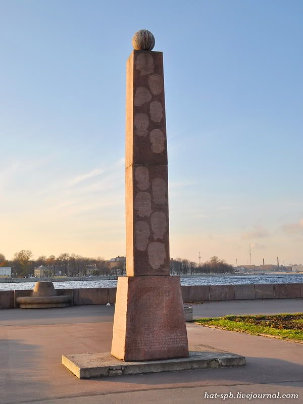 700 см обелиском из красного гранита, посвященным знаменитым петербуржцам.